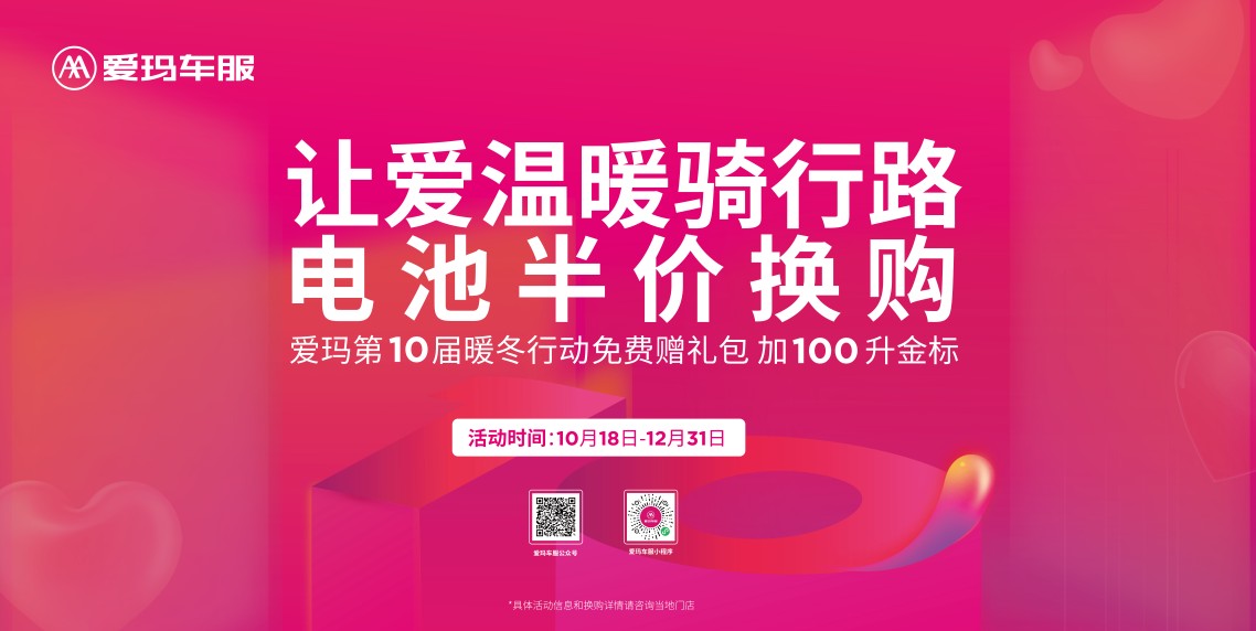 除了为社会奉献者带去暖温,爱玛还在全国范围推出贴心的售后服务。对于广大消费者而言,电动车在使用过程中难免会遇到问题,尤其是冬天,电池的耐用性直接影响续航里程,电动车维保也是用户尤其关心的问题。为此,10月18—12月31日,爱玛车服推出“25项免费点检服务 暖心进社区”活动,消费者到活动指定社区,即可享受提供包括检测轮胎、电池检测保养在内的多达25项免费检修保养服务。另外,爱玛还推出“电池半价换购”活动,到爱玛服务门店,参与“电池以旧换新,半价换购”,免费赠礼包,加100元可升级高品质“金标电池”,让你尽享超值优惠!